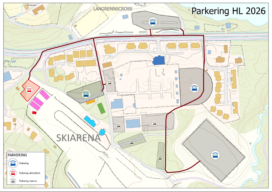 P-plasser i umiddelbar nærhet av arenaer, følg anvisning fra vakter.