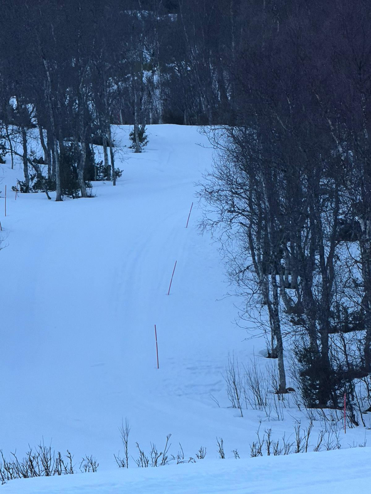 Vi har vært på befaring i ettermiddag. Det har vært lite endringer mht snø siden mandag, så det ser fortsatt veldig bra ut. Jeg har lagt ved noen bilder som beskriver situasjonen godt. Selve løypa har over 50 cm hardpakket snø og er trygge slik vi ser det nå. Det melder minusgrader i traseen tom tirsdag.