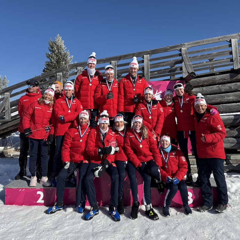 Felles premieutdeling menn og kvinner etter stafett kvinner er i mål.