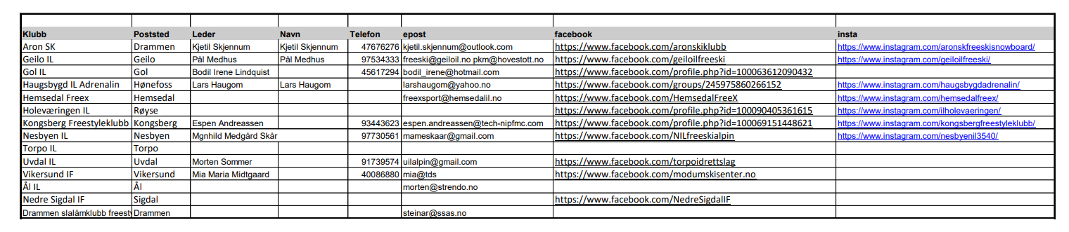 | Leder | Elsa G. Kristjansdottir | Kongsberg FK | elsa.giljan@gmail.com | 48310226 |