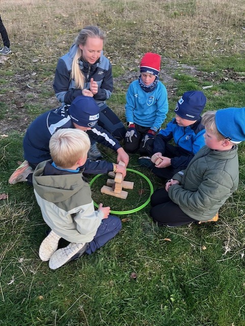Økta besto av flere artige og kreative aktiviteter, som stafetter med biltrekking, bakken er lava , samt tårnbygging med planker – alt med fokus på lek, samarbeid og å ha det gøy på trening. Barna fikk virkelig brukt både kroppen og fantasien, og stemningen var på topp fra start til slutt.