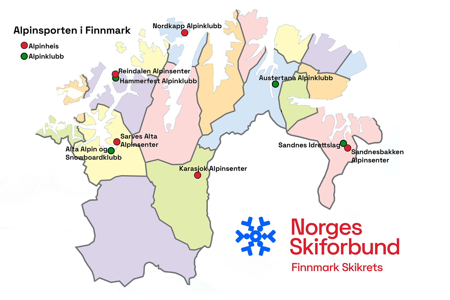 Vi har fire alpinklubber i Finnmark i dag, der klubbene deler på å gjennomføre totalt fem rennhelger og samlinger gjennom sesongen. For kommende sesong: Kretssamling i Levi - Finland i desember, Altasamlingen i januar, kretsrenn på Sandnes i februar, KM i Hammerfest i mars og KM del 2 og sesongavslutning i Alta i april.