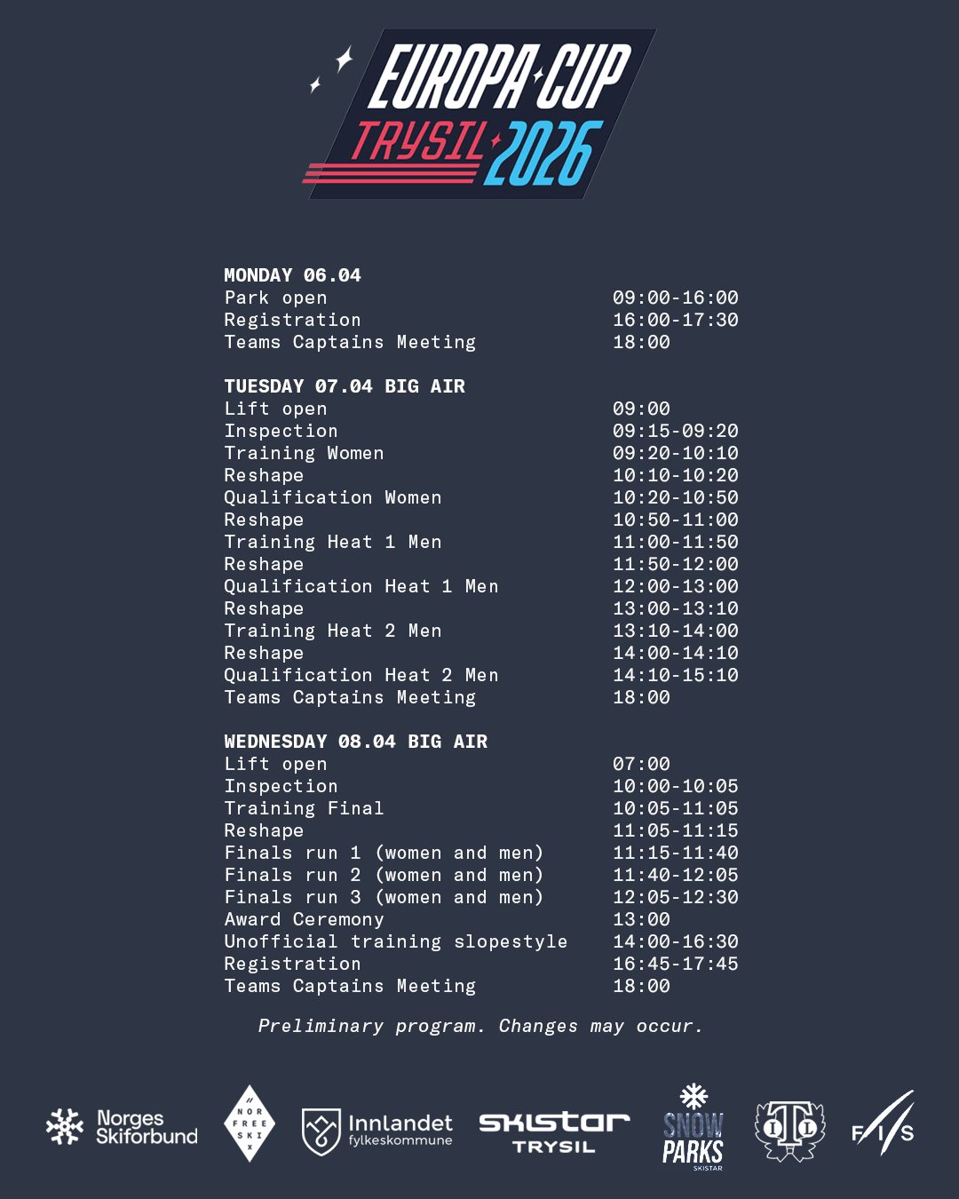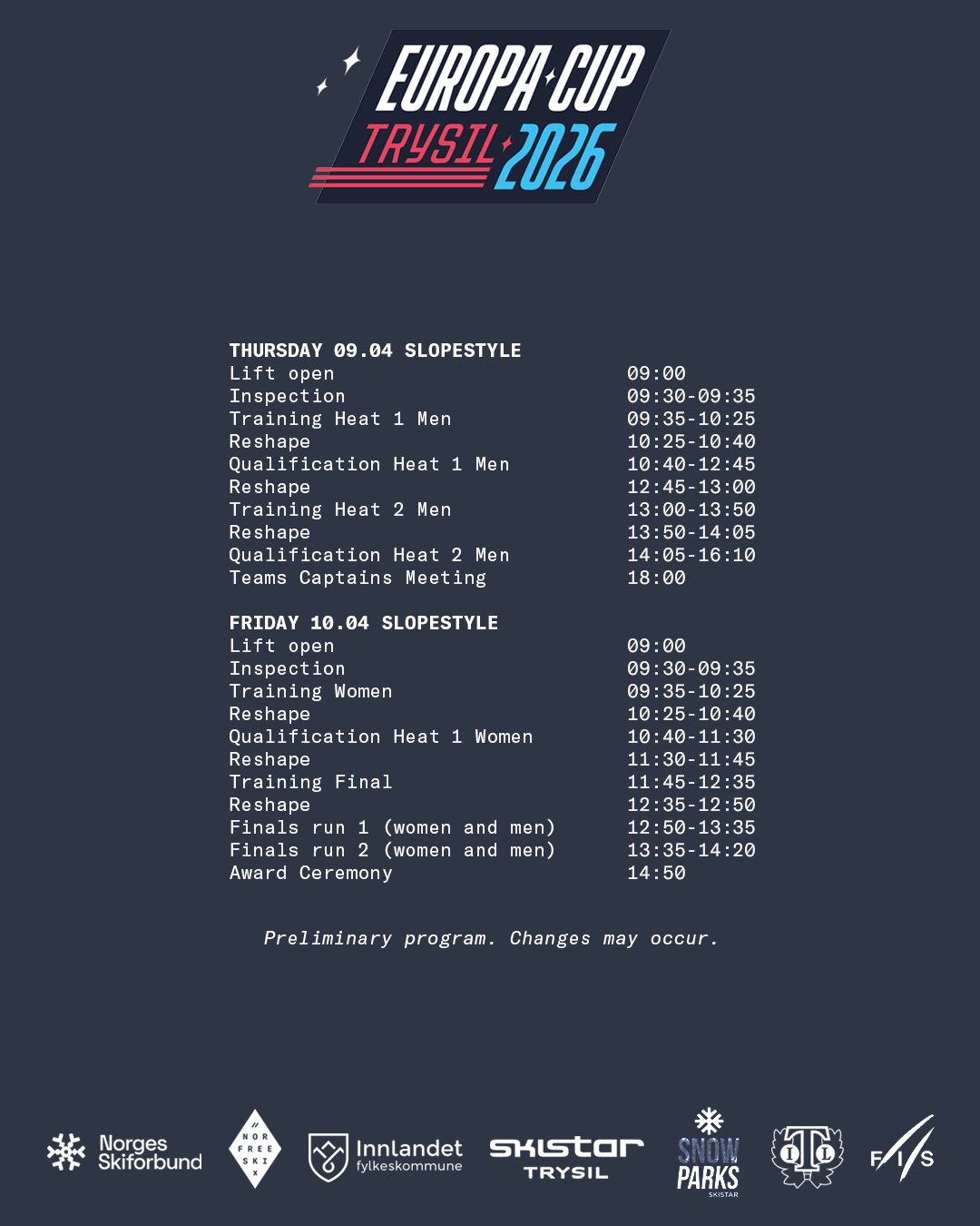 Velkommen til en spektakulær konkurranse med Europas beste freeskiutøvere! 6.–10. april 2026 går Europacup i freeski av stabelen i den nye parken i Trysil. Et høydepunkt for skiinteresserte og alle som vil oppleve hopp med store triks.