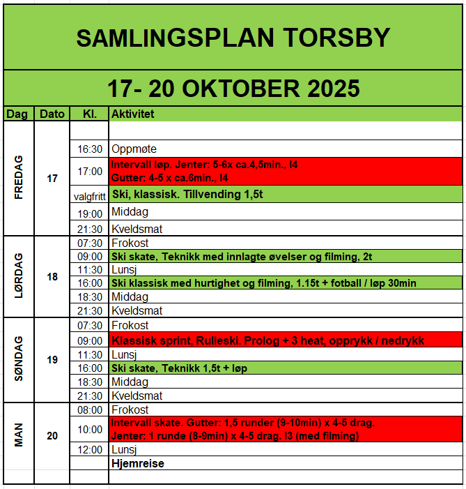Utstyr: Husk eget sengetøy, ellers pakker man etter oppsatt øktplan. Still forberedt med riktig bekledning og ustyr for alle økter.