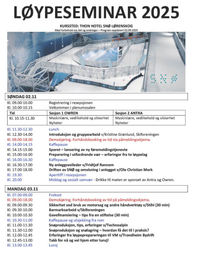 Årets Løypeseminar arrangeres på Thon Hotel Snø, Lørenskog 2.-3. november.