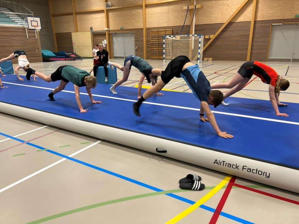 - Økt 1; Aktivitet inne i Gausdal Arena, med fokus på koordinasjon, spenst, kroppsbeherskelse og balanse med hinderbane, airtrack og trampoline med skumgrop - og godkjent sikkerhetspersonell. Her fungerer det best med sokker, ikke sko!