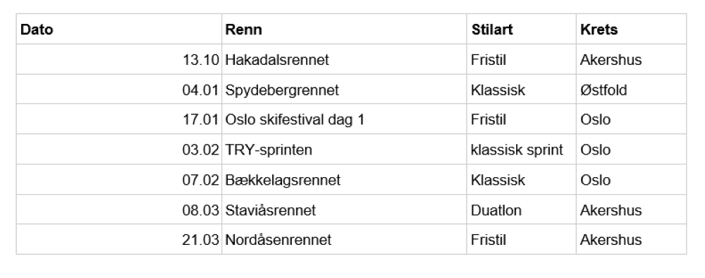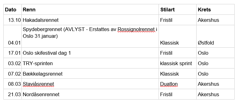 Resultatene vil i år ikke bli publisert i egen app. Oppdaterte sammenlagtlister legges i stedte ut på en nettside. Nettadressen vil bli publisert i god tid før første renn.
