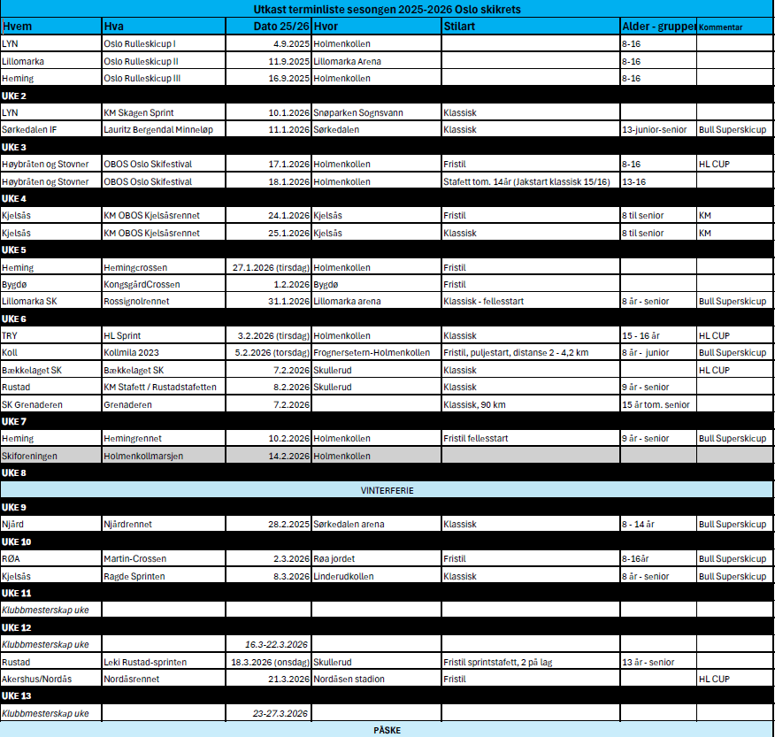 Skulle det være noen spørsmål tilknyttet til terminliste kan dere kontakte Merlin Vervoorn (Nestleder Oslo Langrenns Komite) på merlinv@gmail.com