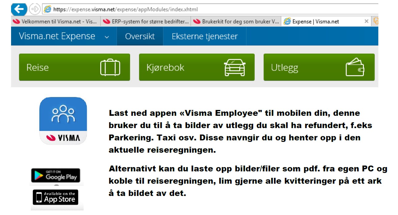 - Under Reise kan du også føre kjørebok og utlegg.