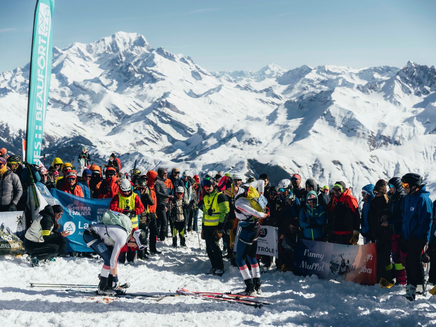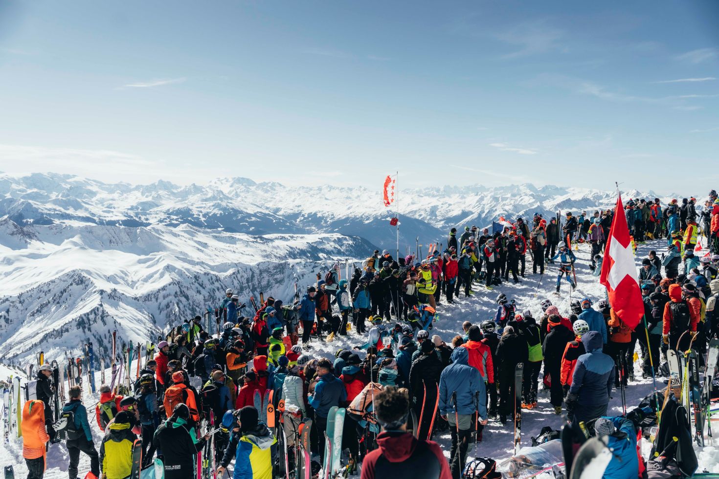 Etter en spektakulær ryggpassasje kommer vi opp til et folkehav av franskmenn, motorsager (!) og kubjeller. Mens vi står der i halvsvime merker vi at stemningen drar adrenalinet opp og straks kaster vi oss utfor de neste 1000 høydemeterne. Det tar ikke mer enn et minutt før unertegnede innser at åpningen var i overkant offensiv. Lårene stivner momentant, og det blir full overlevelsesmodus med flere nesten-tryn. En italiener ser ut til å ha hatt en enda verre dag. Han kommer gående nedover med brukket ski på sekken. Vel vitende om de 800 høydemeterne igjen til mål.