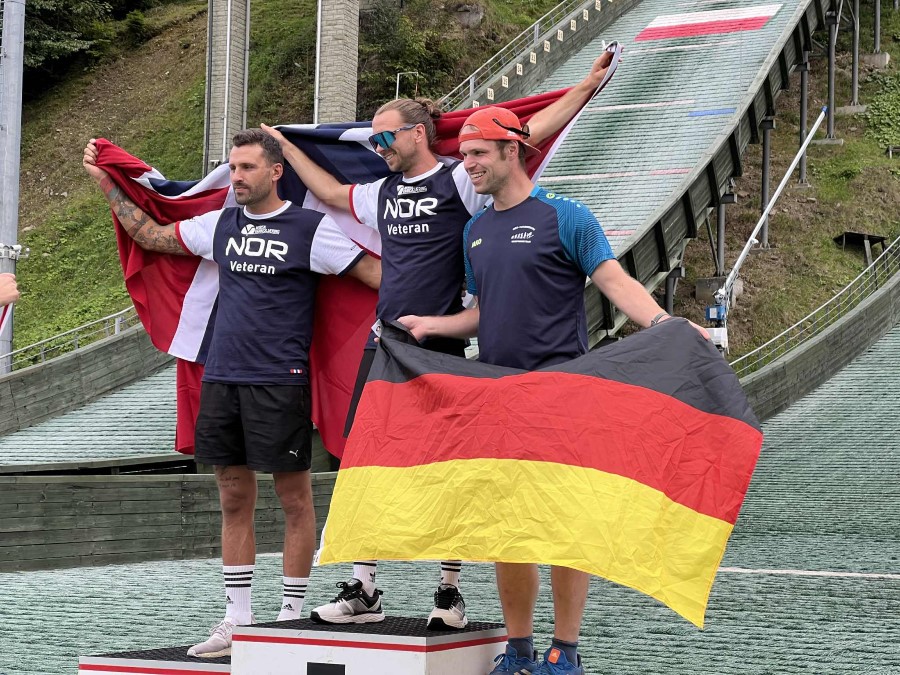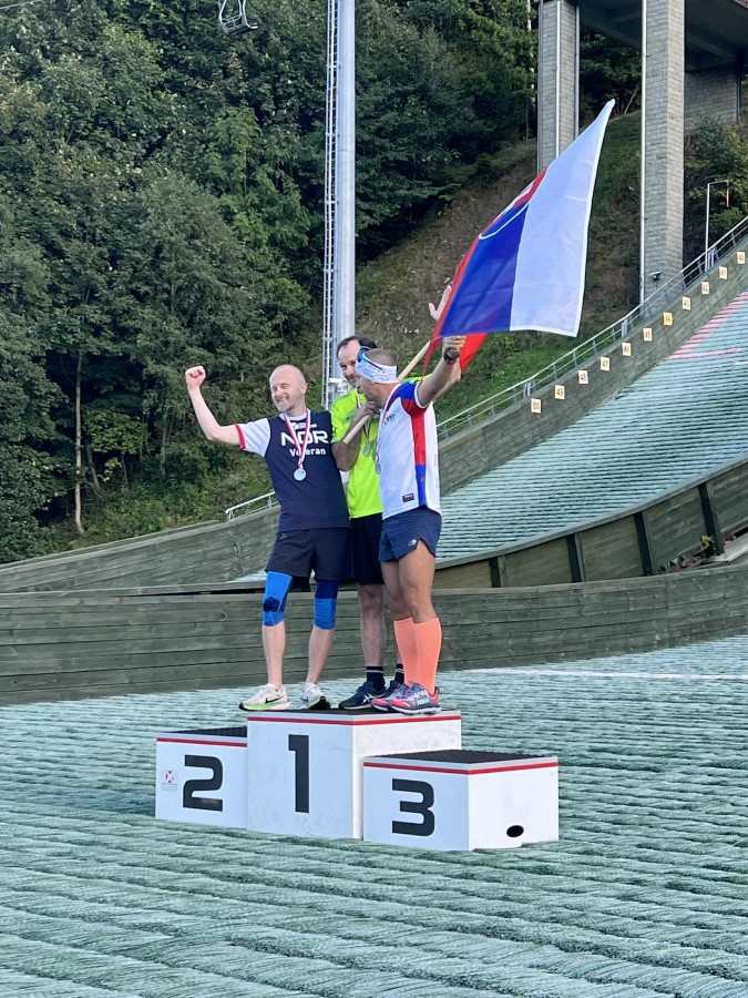 På bildet: David Bieniek feirer ett av to sølv i sin klasse i veteran VM.