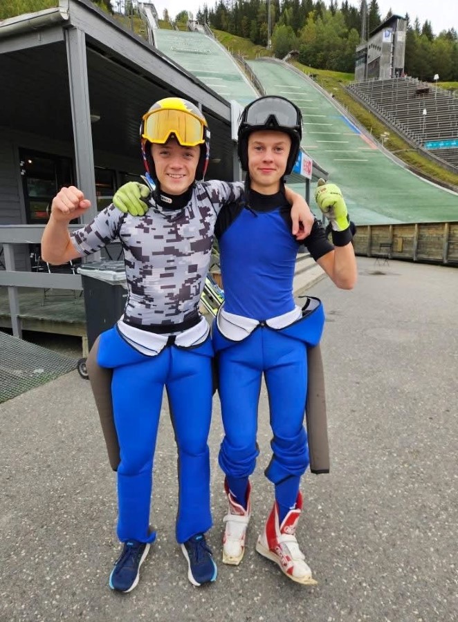 På bildet: Rasmus Kittelsen (til høyre) sammen med lagkamerat Oliver Haugerud Moan.